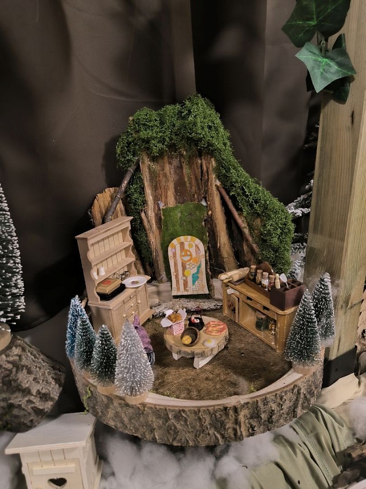 Wir glauben, dass Magie im Detail liegt. Deshalb verwenden wir nur natürliche Materialien: echtes Moos, Holzscheiben aus nachhaltiger Quelle, winzige, von Hand geformte Werkzeuge und Lichter, die wie kleine Abendsterne leuchten.